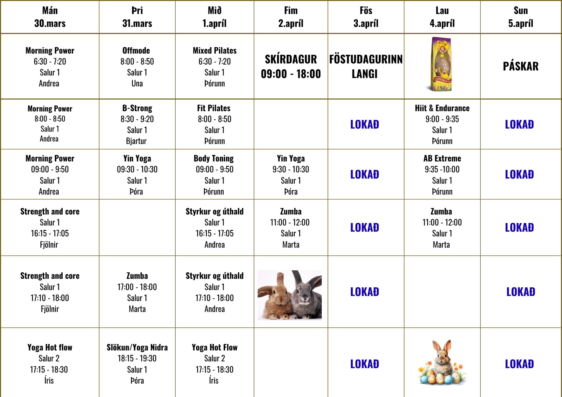 Stundaskrá - Páskar 2026
